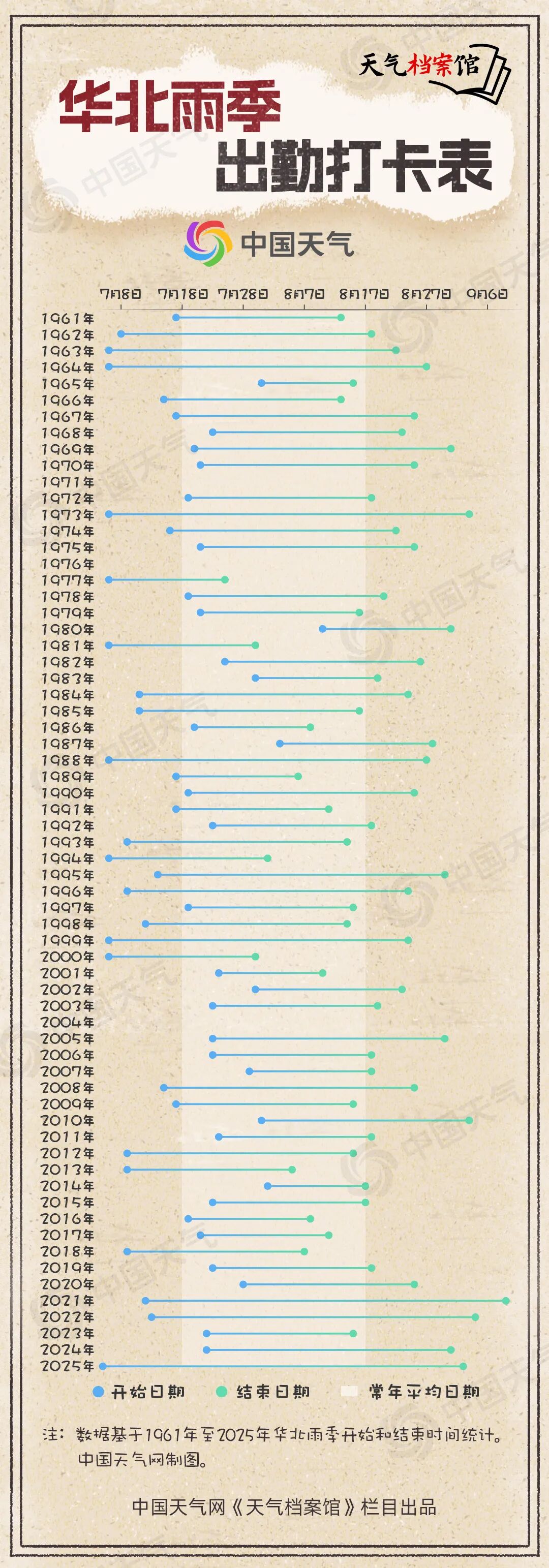 大家好,我是华北雨季,一个职守华北地区降雨KPI的“打工东谈主”。江湖东谈主送绰号“七下八上”,因为我的老例上岗技巧为每年七月下半月到八月上半月。不外,这年初干啥齐崇拜“内卷”,咱们雨季圈也不例外,早到晚退、加班干活那是家常便饭。