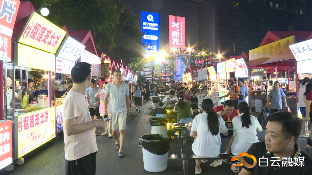 白云印象泰意念念夜市食物品类丰富,观者成堵。